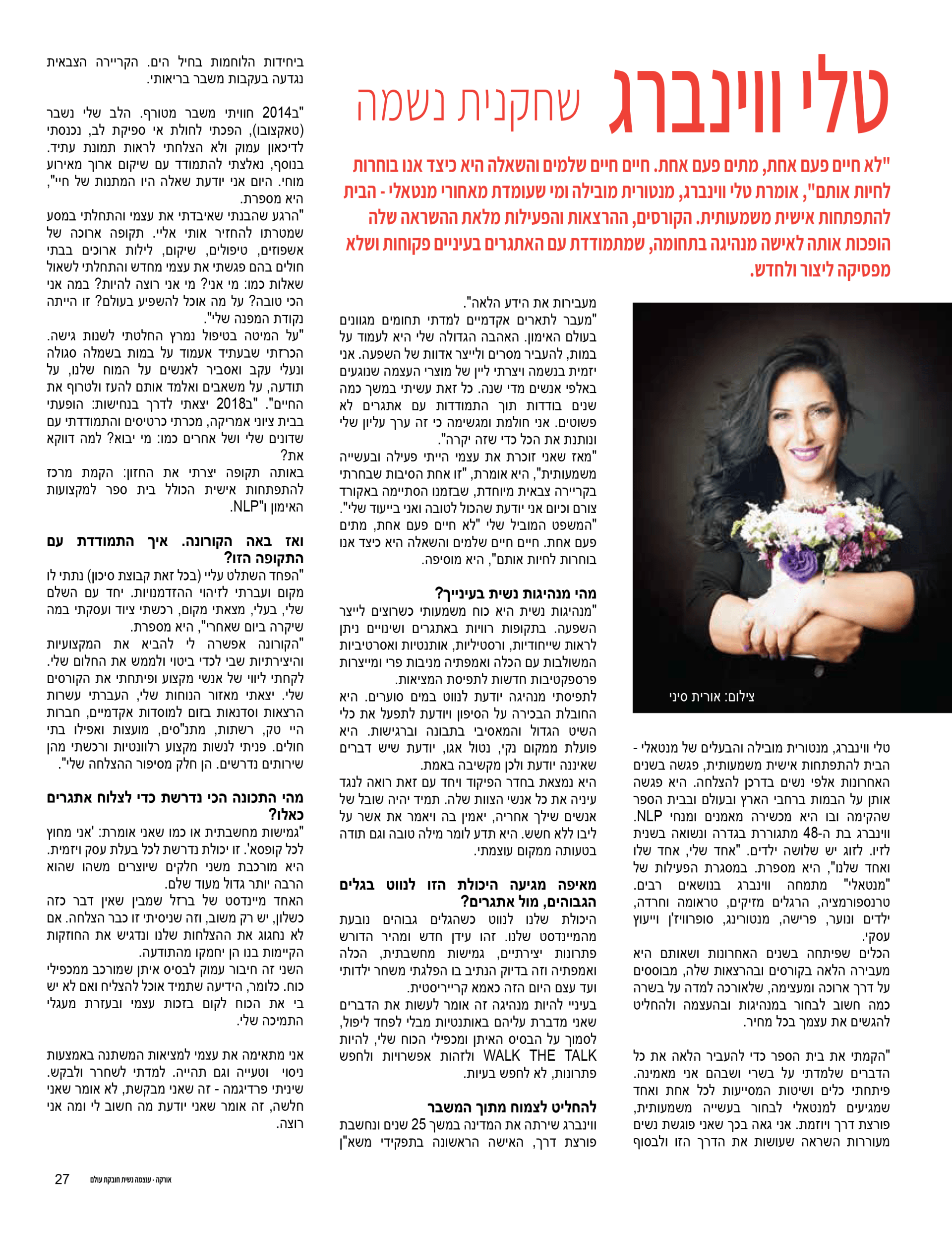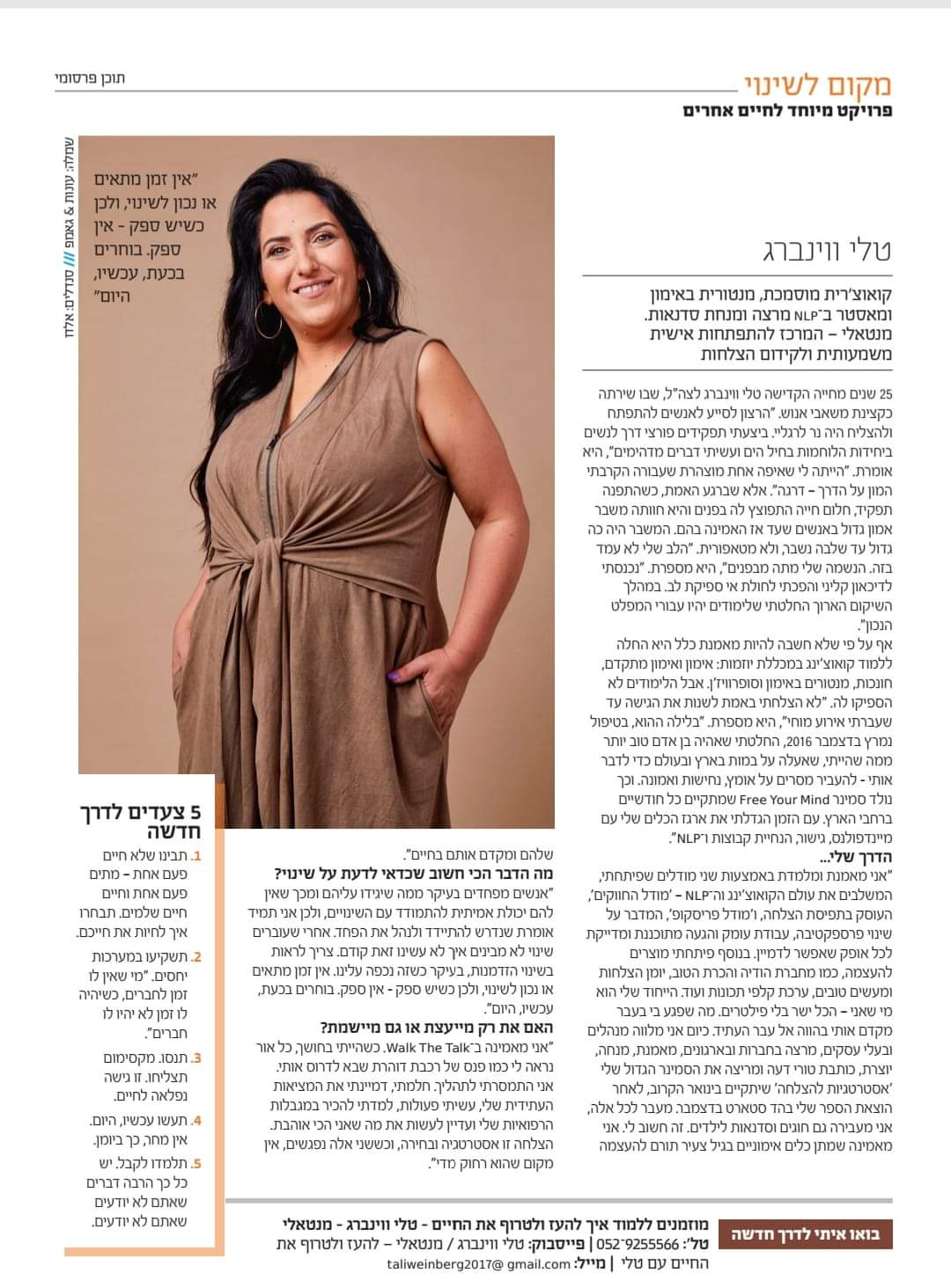 עבורי, העצירה הכפויה הזו הייתה רק חניית ביניים במסלול ההמראה. לאחר ששילבתי Being"" ו – Doing"" במסע הצמיחה האישי שלי, המילים הללו הפכו למנוע הפעולה שלי. השלמתי את תהליך ההכשרה המקצועית שלי וייסדתי את "מנטאלי" – המרכז להתפתחות אישית משמעותית ולקידום תוצאות.