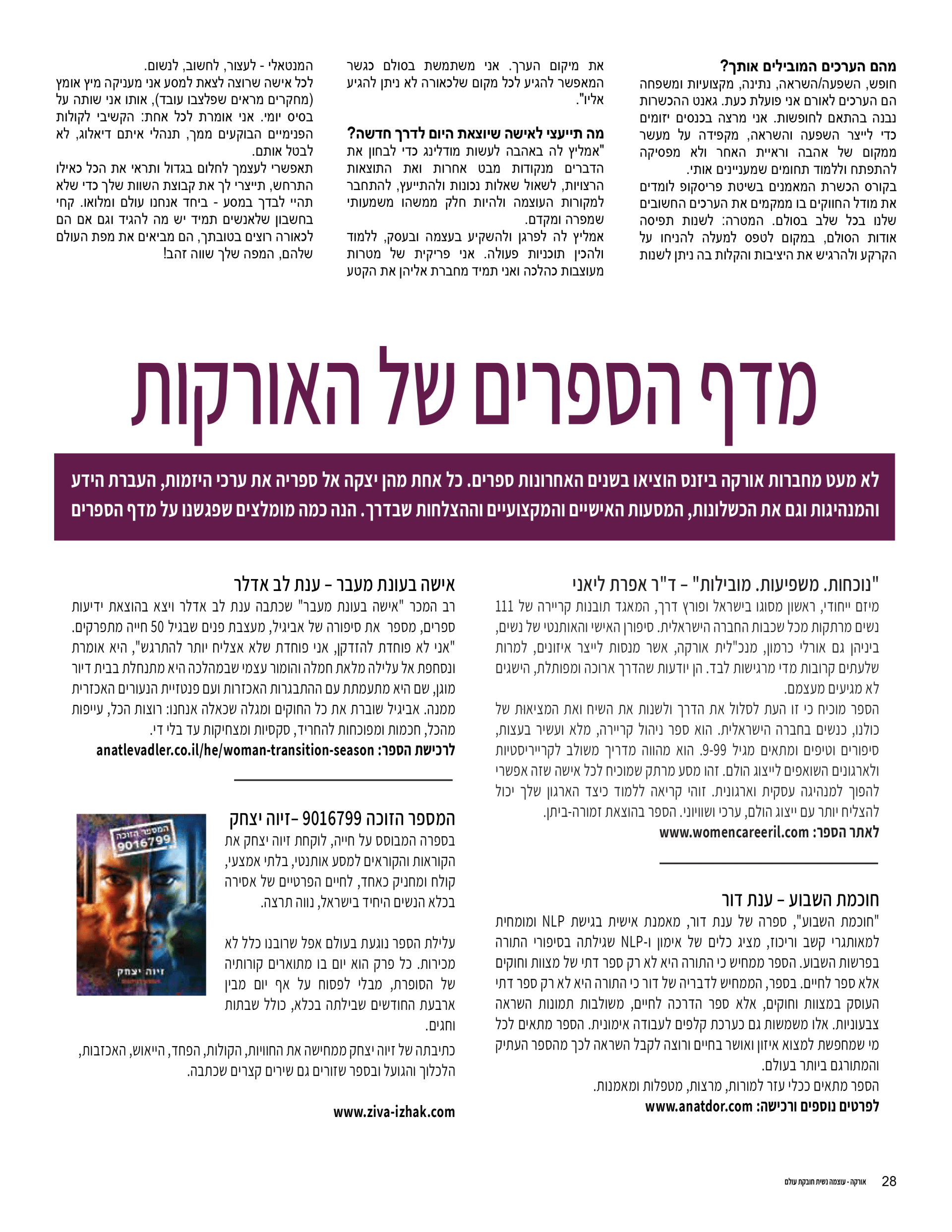 אני יוצרת ויזמית בנשמה, יודעת להתאים 'חליפה' לפי הזמנה והתכנים שלי מותאמים למאות אנשים, לקבוצות קטנות וגם ליחידים.